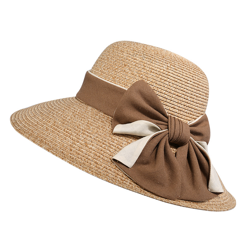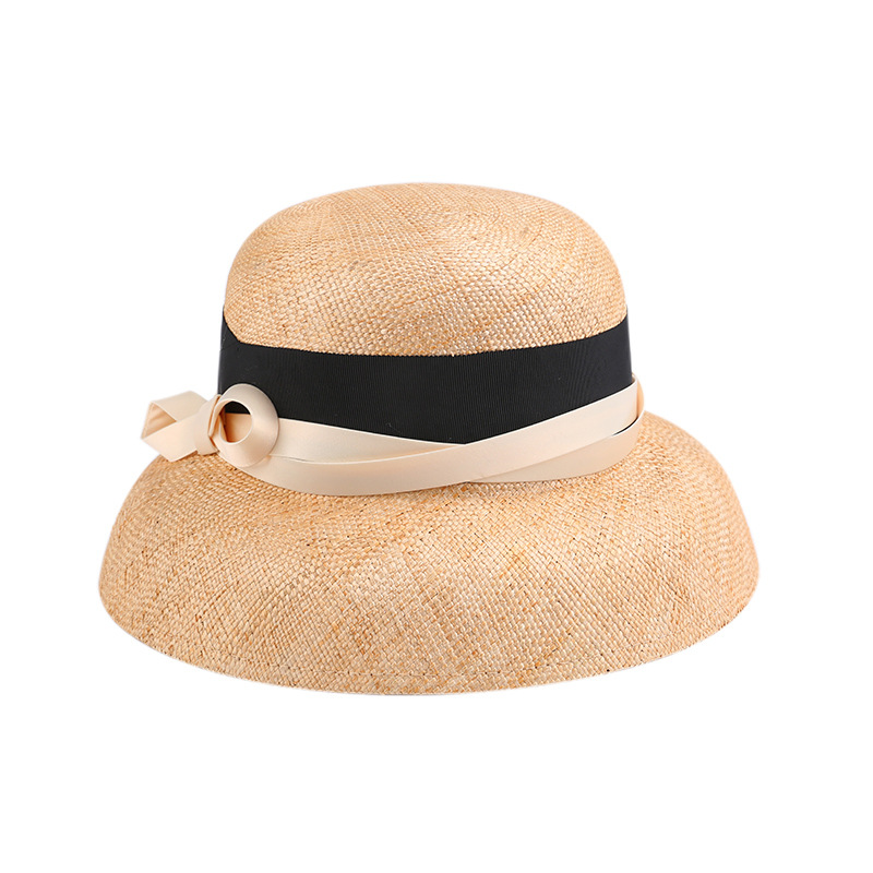 高端真絲麻草帽女可折疊遮陽(yáng)帽卷邊沙灘帽夏天韓版百搭太陽(yáng)帽批發(fā)