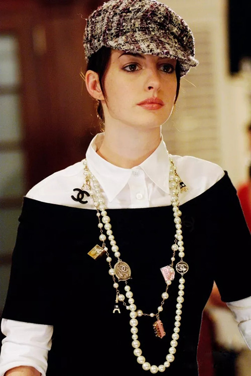 像這一部經(jīng)典的《穿Prada的女魔頭》里,Anne hathaway在穿Chanel的時候就戴上了一頂毛呢格紋報童帽