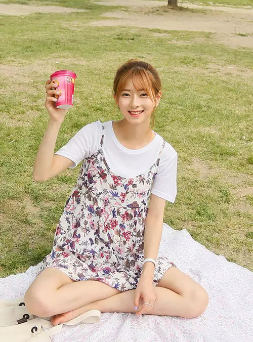出游當(dāng)然是選擇涼快的吊帶連衣裙(slip dress),獨具復(fù)古田園風(fēng)格的小碎花和草帽相得益彰,俏皮可愛的氣質(zhì)立顯。